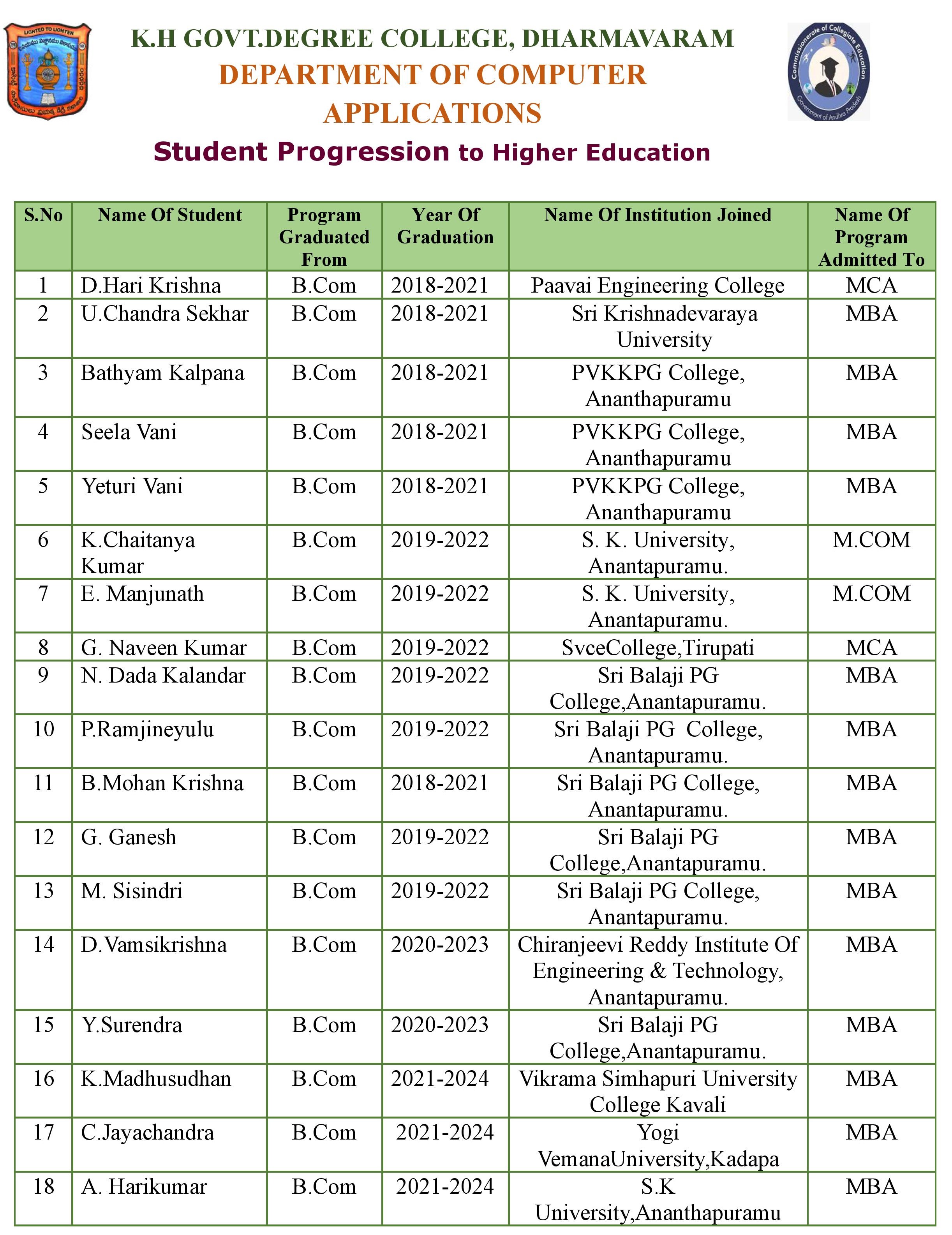 Computer Applications - Student’s Progression to Higher Education